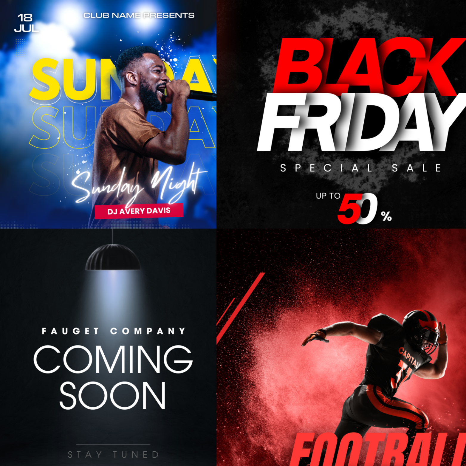 We design and develop websites, menus, logos, brochures, and event creatives that are tailored to your brand’s identity. With a balance of aesthetics and functionality, our designs not only look great but also help your business stand out in a competitive digital landscape.